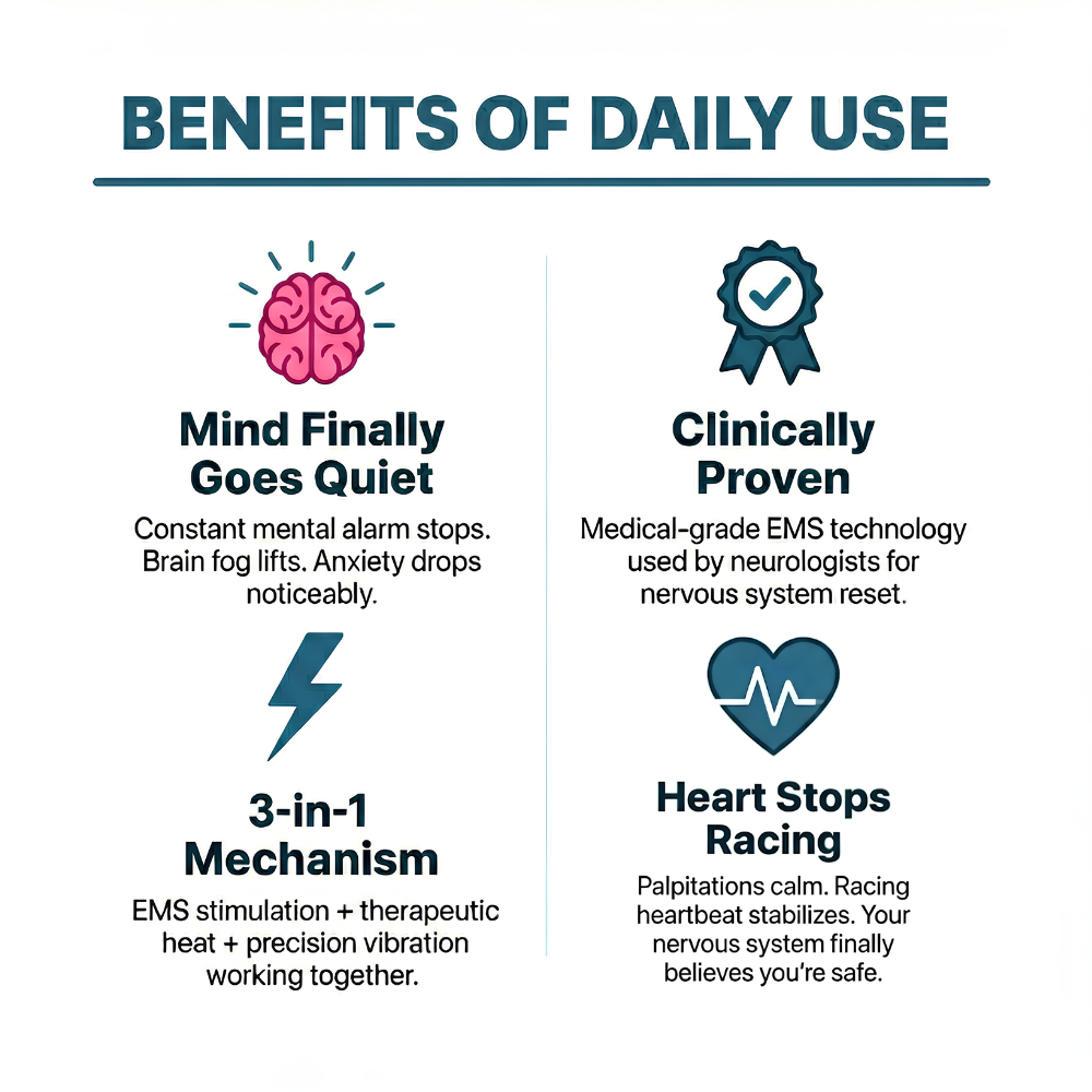 Unlike PT, medication, and therapy that only treat symptoms, CervaLuxe™ decompresses the vagus nerve itself. Direct mechanism. Proven results. 15 minutes daily.
