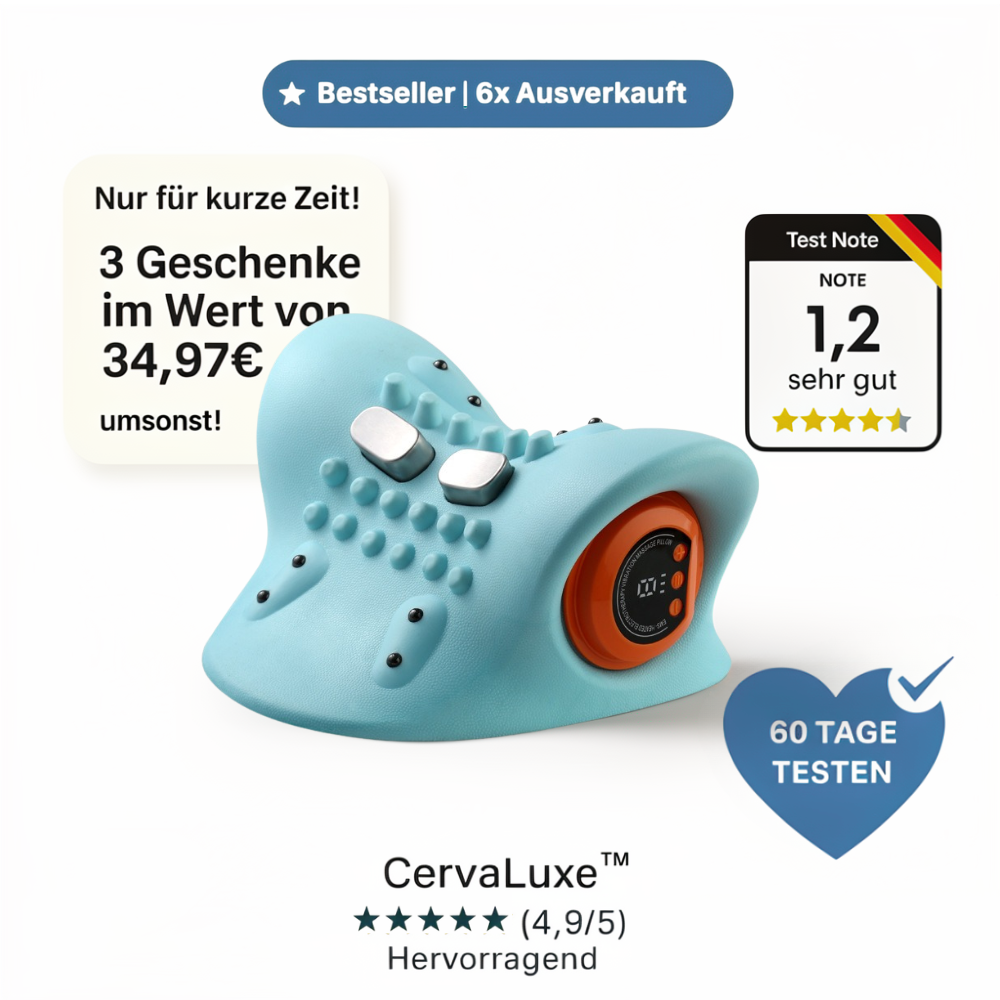 So nutzen tausende Kunden den CervaLuxe™ täglich. 15 Minuten auf der Couch, im Bett oder überall. Viele berichten von sofortiger Entspannung